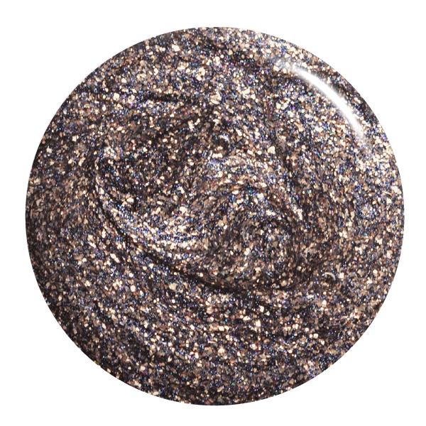 Gunmetal grey. Medium-dark. Frosted. Golden metallic finish. Warm undertone.