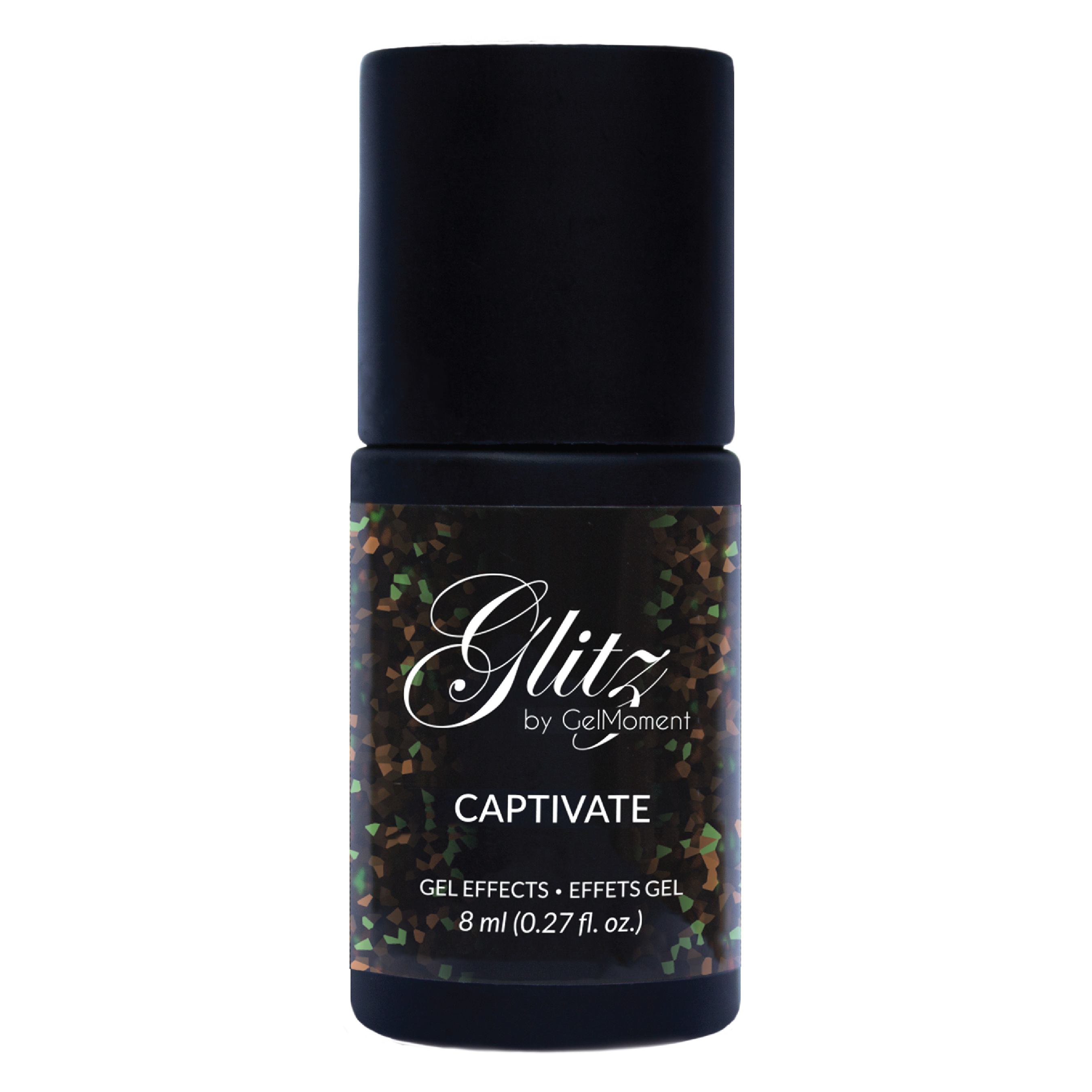 This multi-faceted Glitz Gel Effects Top Coat is like adding a bit of sparkly confetti to any manicure! Clear with random specks of glittery color, one thin coat of Captivate adds a special effect to any GelMoment Polish that can't be ignored.